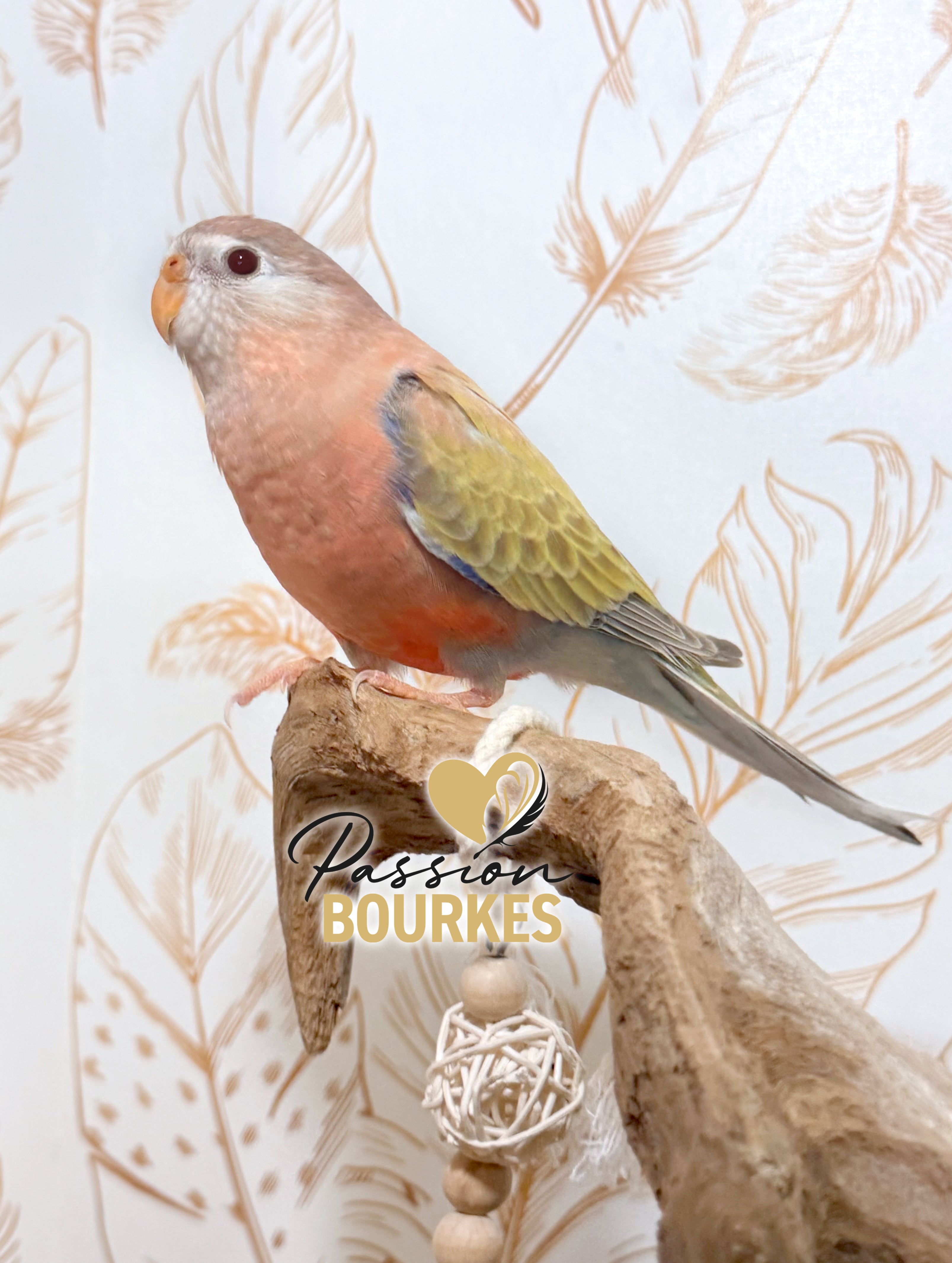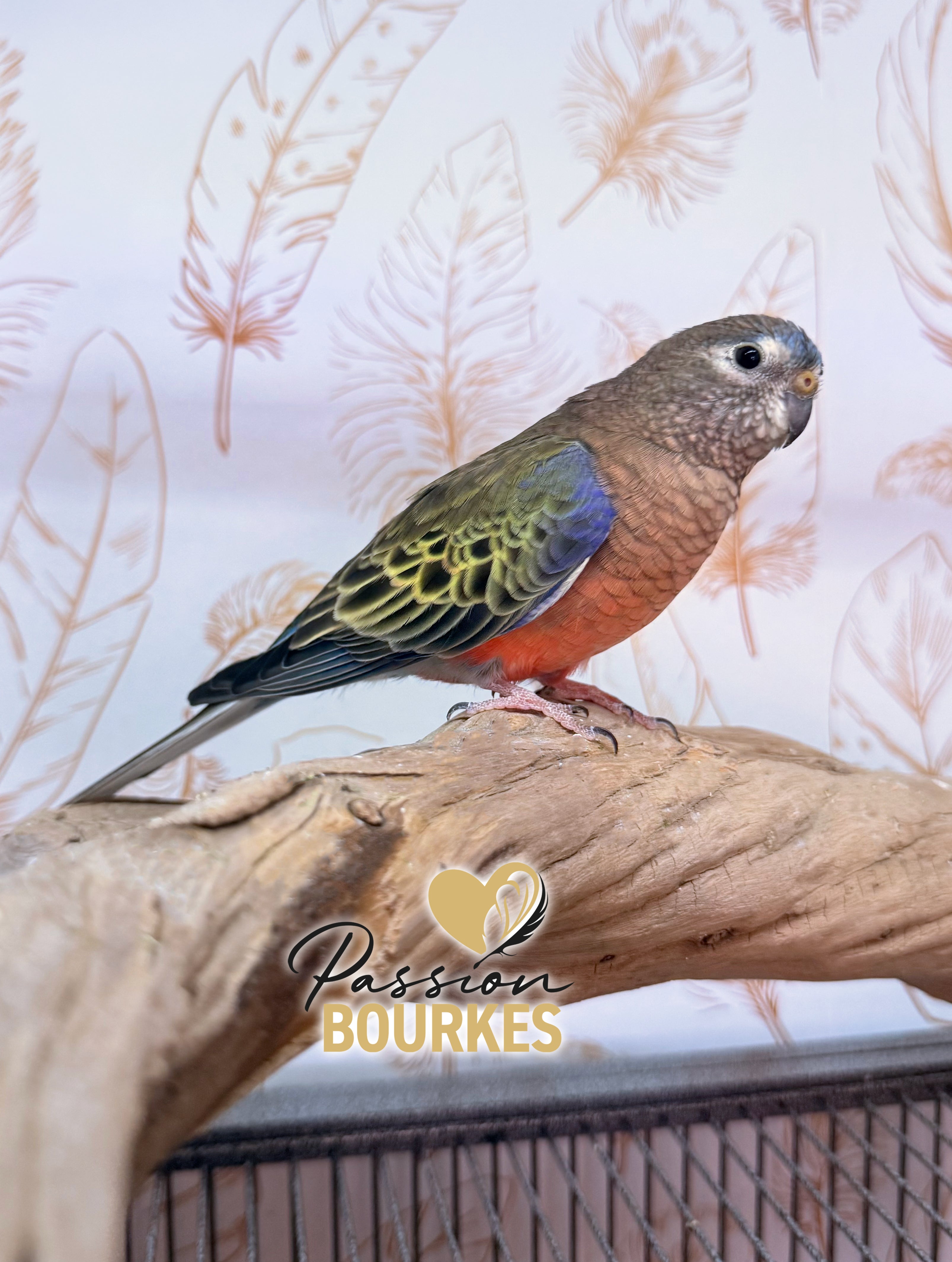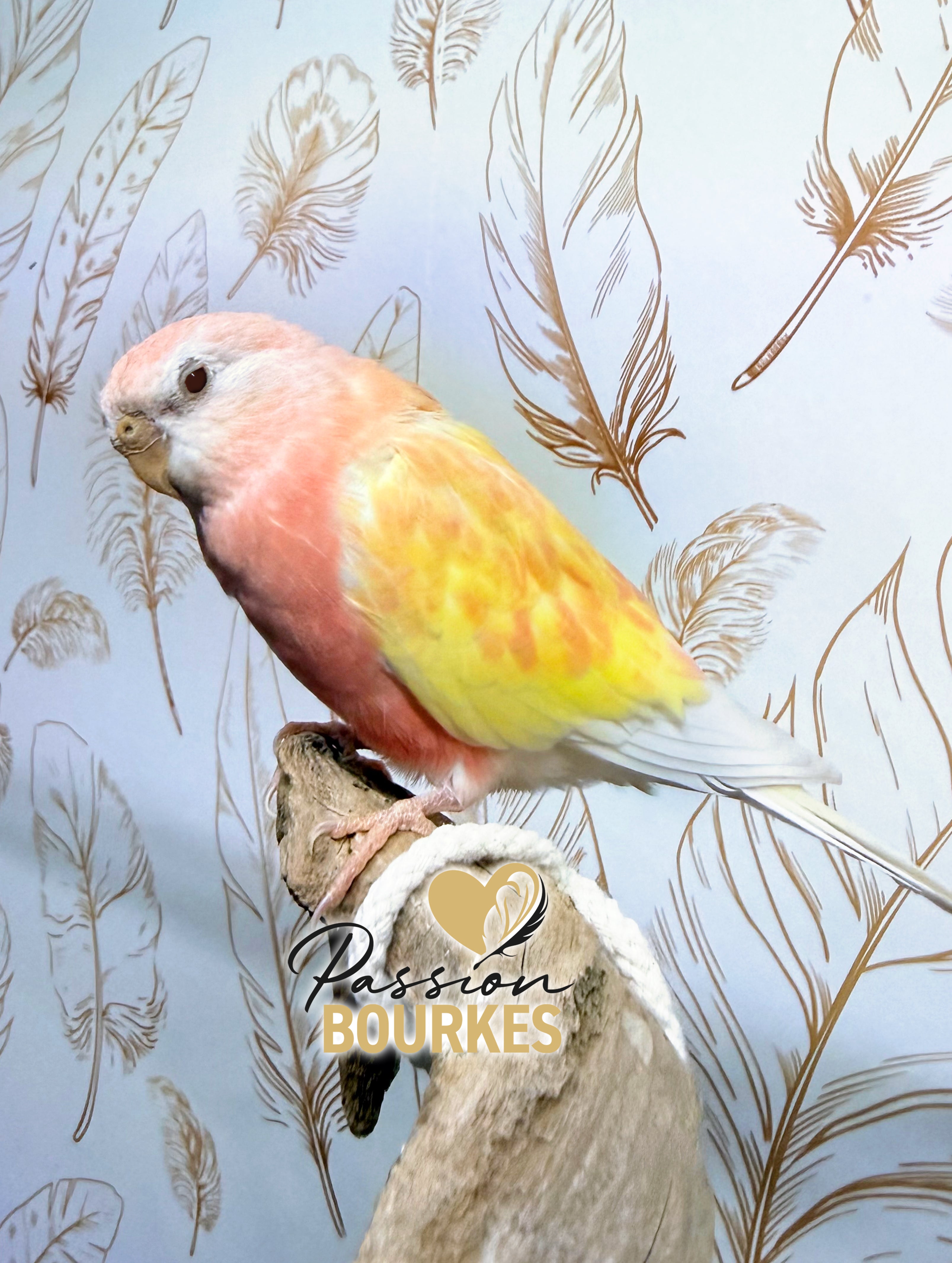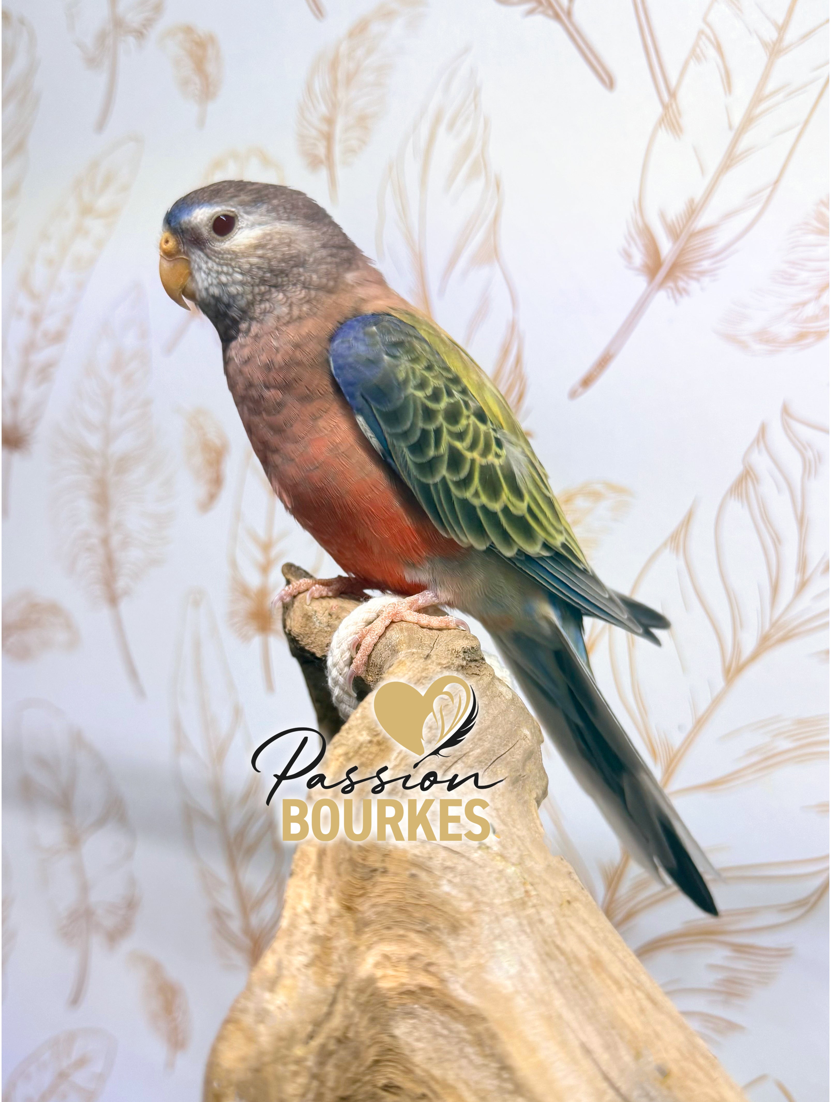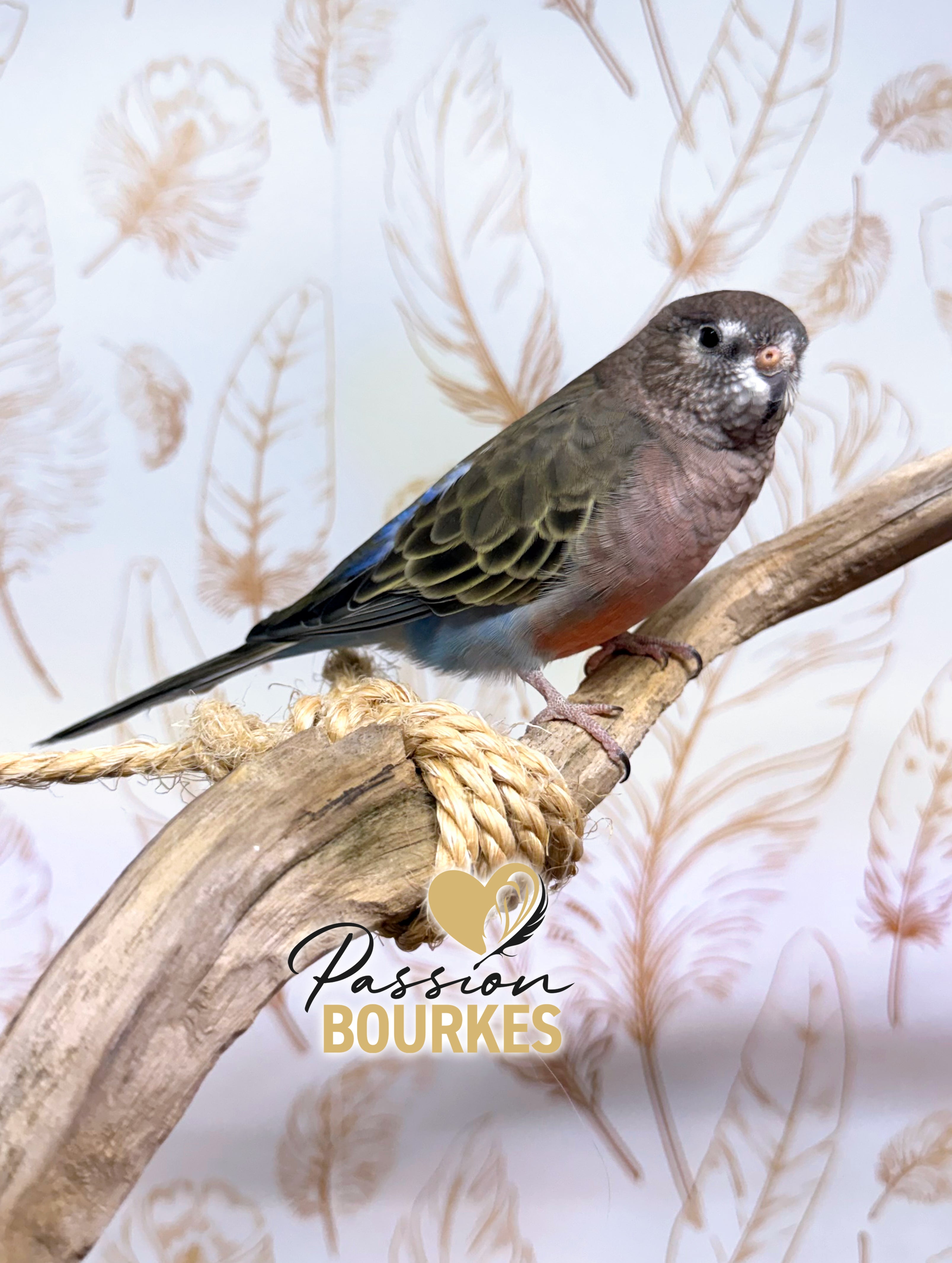 Premier reproducteur de Passion Bourkes, Tiki est à l’origine de l'oisellerie. Mâle type sauvage porteur de plusieurs mutations, il transmet autant sa stabilité que sa douceur. Depuis 2024, il est le papa de nombreuses petites merveilles.